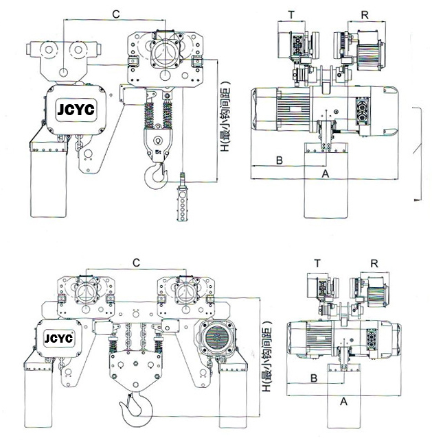 | 型號(hào) | 起重量Ton | 單位mm | |||||||||||||