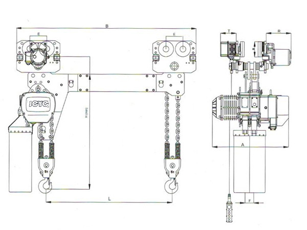 極限開關(guān): 吊上吊下都有極限開關(guān)裝置,使自動(dòng)停止,防止鏈條超出,確保安全。